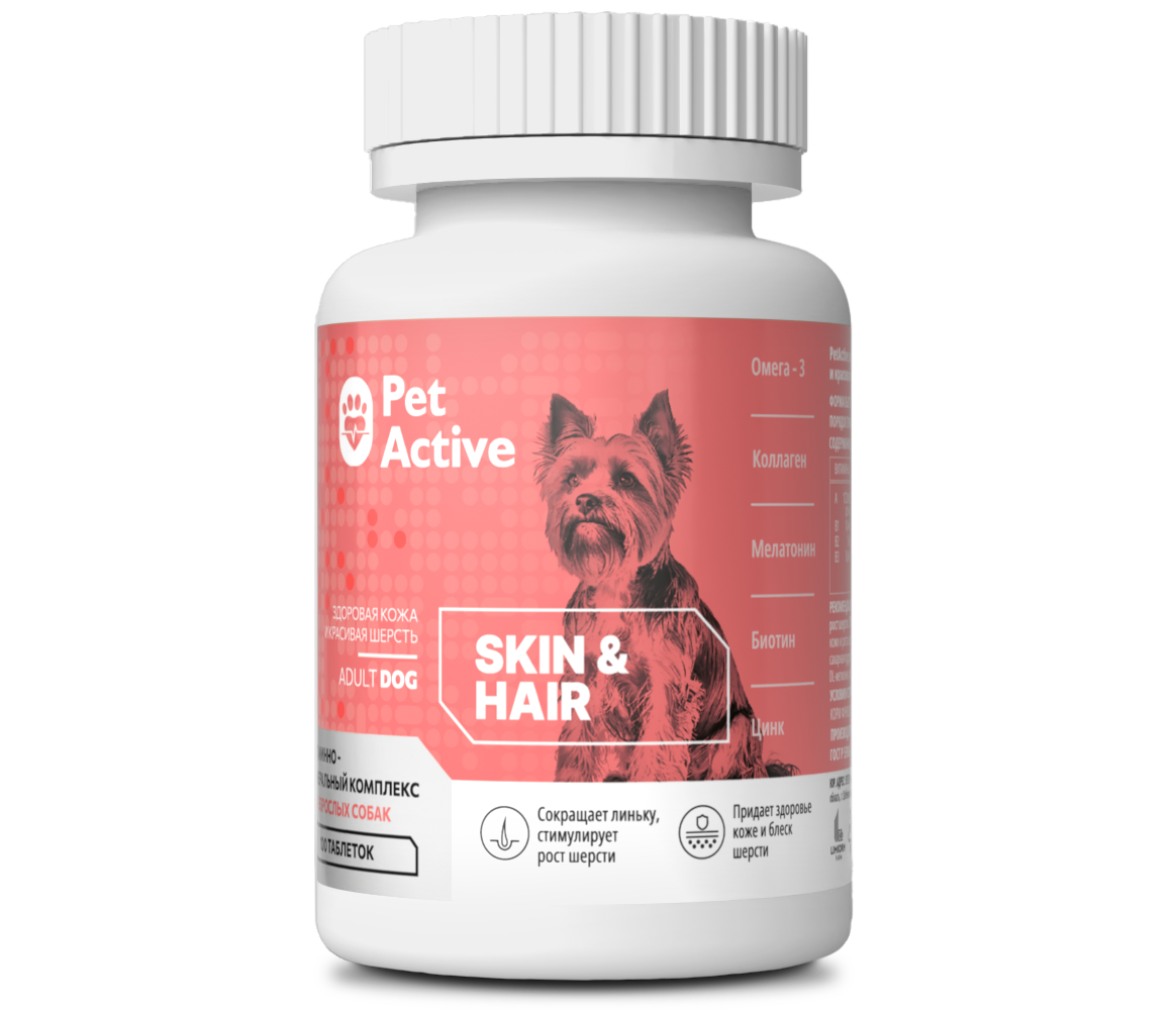 Проблемы с шерстью и кожей – одни из самых частых у владельцев собак и кошек. Тусклый волос, сильная линька, перхоть, зуд – всё это сигналы дефицита Омега-3, цинка, биотина и других нутриентов. PetActive предлагает два специализированных комплекса: Skin&Hair с пивными дрожжами, цинком, эхинацеей и Омега-3, а также Коллаген для поддержки кожи и шерсти изнутри. Регулярный приём помогает сократить линьку, вернуть блеск, увлажнить кожу и уменьшить воспаления. Подходит для всех пород и возрастов.
