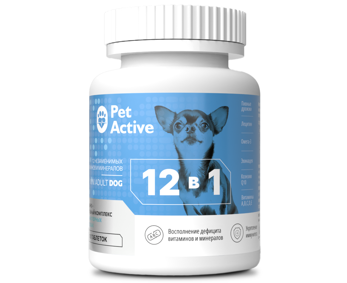 Линейка витаминно-минеральных комплексов 12 в 1 от PetActive создана для обеспечения ежедневной потребности питомцев в витаминах, макро- и микроэлементах. В ассортименте представлены все необходимые вариации: для щенков и котят, взрослых собак (включая миниатюрные породы), беременных и кормящих, а также для взрослых кошек и котят. Каждый комплекс содержит 12 витаминов, минералы (кальций, фосфор, цинк, железо), Омега-3 и коэнзим Q10. Продукты подходят для питомцев на любом типе питания. Укрепляют иммунитет, кости, зубы, шерсть, сердце и нервную систему. Не содержат искусственных красителей и ароматизаторов. Выберите свой вариант 12 в 1 и получайте здоровую поддержку каждый день.